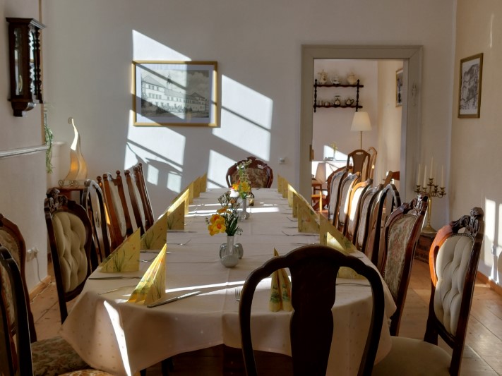 You can enjoy the rich breakfast buffet and our regional cuisine in the restaurant Behringer-Hainich-Stube.
