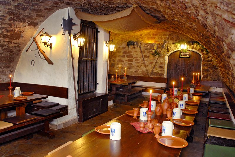 Rustikales Restaurant im Zentrum Eisenachs mit Gewölbekeller, Biergarten und "Räubergelage" als kulinarische Spezialität.