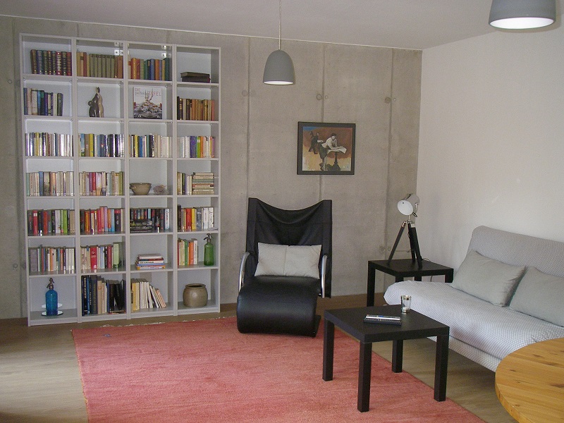 Ein modernes Bad mit begehbarer Dusche, Schlafzimmer mit Boxspringbett 160 x 200 m, ein heller Wohnraum mit Kückenzeile, Eßplatz und gemütlicher Sitzecke, steht Ihnen zur Verfügung. Bodentiefe Fenster im Wohn- und Schlafbereich bringen viel Licht in Ihr Zuhause auf Zeit. Fußbodenheizung ist in allen Räumen vorhanden, auch im Badezimmer. Ein volles Bücherregal wartet darauf, bei Schlechtwetter, das kann es auch in Eisenach geben, durchstöbert zu werden. Die Lage ist fußläufig zu den Sehenswürdigkeiten der Stadt, zum Wald, wie auch zum Kathausgarten und der Wandelhalle. Sie werden sich wohlfühlen, wir freuen uns auf Ihr Kommen!