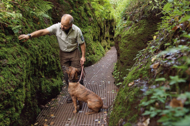 A wooden gate with a dragon leads into the 250 million year old rock gorge. Rare plants such as the devil's claw or the toothwort, but also mosses, ferns and some animals can be discovered along the Steinbach. Then - a small waterfall, the overgrown rocks move closer and closer together and get higher and higher, the stream suddenly roars under your feet, it gets cool and dim and quiet. Arrived at the Rennsteig trail, you have made it and maybe you deserve a refreshment.