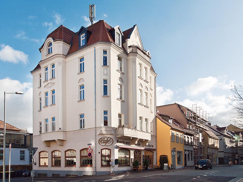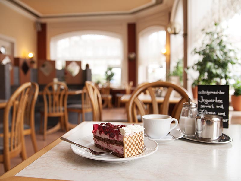 Traditionell hergestellte Konditoreiwaren, Riesenauswahl an Torten, Thüringer Kuchen, Petitfours, Desserts, Teegebäck, Baumkuchen, Pralinen, feine Kaffee- und Teespezialiäten, Eis, Frühstück und Herzhaftes aus unserer Backstube - dazu ein guter Wein vom Winzer.