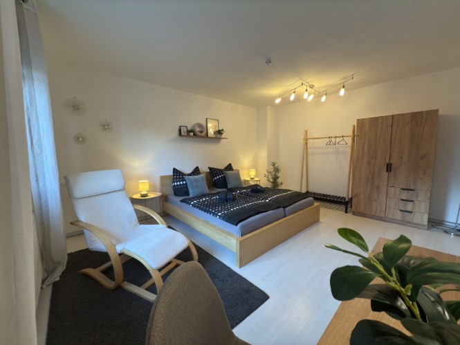 Schlafzimmer 1: großes Doppelbett für 2 Personen