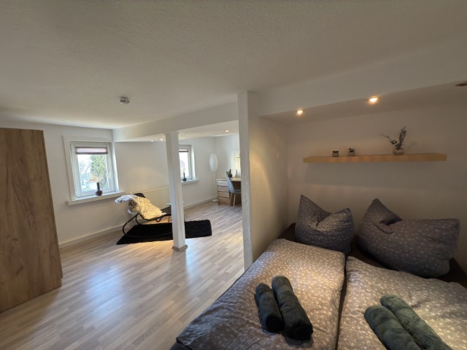 Schlafzimmer 2:  französisches Bett/ Futon 1,40 m für 2 Personen