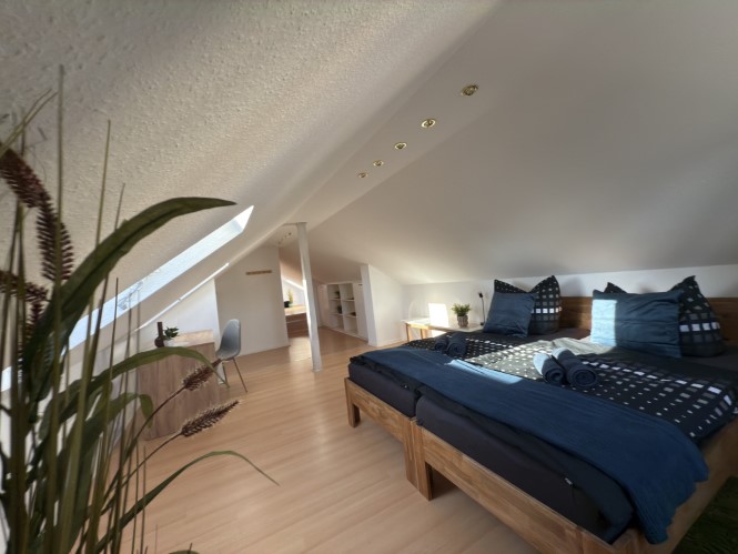 Schlafzimmer 3: großes Doppelbett und ein Einzelbett für 3 Personen