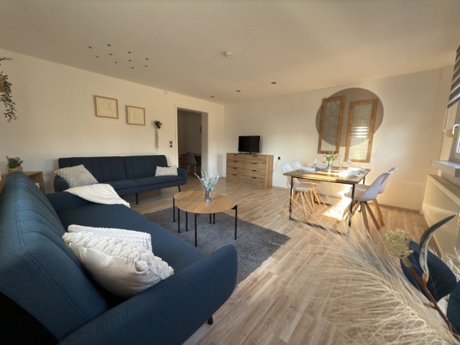 Das Ferienhaus ist voll möbliert und ausgestattet, auf 135 qm finden 9 Personen und ein Kleinkind bis 3 Jahre im Babybett genügend Platz. Genießen Sie die stilvoll ausgestatteten Wohnräume auf 3 Etagen mit allen modernen Annehmlichkeiten.